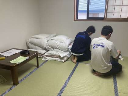 6時半に起床し、部屋では生徒たちが今日の活動にそなえ身支度、リュックの中身を整理しています。