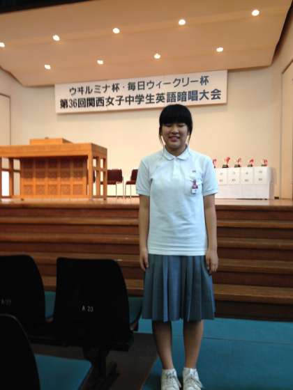 9/12の土曜日、土曜授業の後3年生の原さんが、大阪女学院で行われた『第36回ウヰルミナ杯・毎日ウィークリー杯 関西女子中学生英語暗唱大会』に出場しました。関西各府県から実力者が多数出場したこともあり、ハイレベルな大会となって残念ながら入賞は逃したものの、会場の雰囲気や審査員の眼差しに臆することなく、堂々としたスピーチを披露してくれました。この経験を次のステップにつなげてほしいと思います。頑張れ!