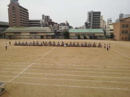 今日の34時間目、3年生が組み立て体操の練習を行いました。