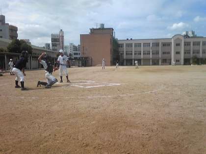 昨日とはうって変わって、秋晴れの空の下、今日は 野球部が港南中学校と練習試合を行いました。一試合目5-0勝ち。二試合目7-7引き分けでした。