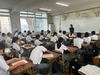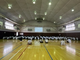 2限は、3年生が体育館にて学年集会を行っています。3年生にとっては、この夏休み、中学校卒業後に歩む路について考える絶好の期間です。自分の強みや弱みについて知り、それらを踏まえて、どの路を選択すれば良いのかを保護者の方々と会話する時間を大切にしてください。
