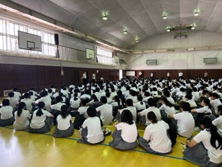 3限は、全学年が体育館に集まり、終業式が行われました。