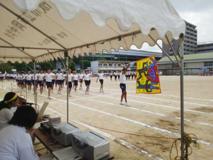 また行進に彩りを与えてくれたクラス旗はどれも味があり、特に3年生のクラス旗は見事な作品が多かったです。文化祭の時にも展示されますので、その時に是非ご覧ください。