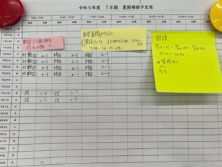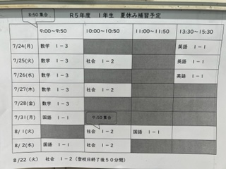 学年ごとに、夏休み期間の補習補充学習が予定されており、実施されています。