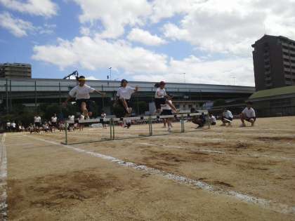 ハードル走の様子です。インターバルは3歩で行くのが理想ですが、なかなか難しいですね…