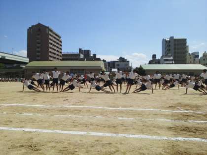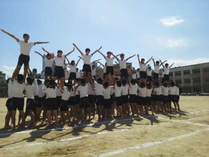 組体はともすれば見栄えが先行しがちになるものですが、派手さはないものの一つ一つの技を丁寧に、そして難易度の高い技も着実にきっちりと行い、3年生が一体となって作り上げた組体は、見る人達に感動を与えてくれたのは言うまでもありません。