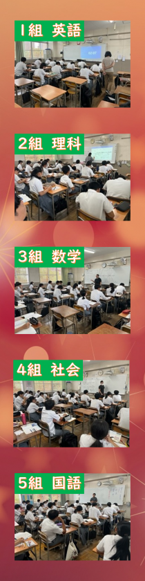 3年生の授業の様子です。2学期が始まり実力テスト・チャレンジテストとテストが続き、疲れがたまってきているところかとは思いますが、前向きに授業に取り組んでいる様子がうかがえました。