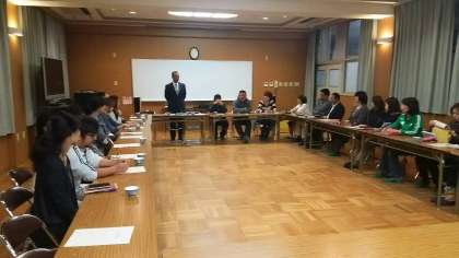 10/8の夜、多目的室で青少年育成推進委員会の定例会議が開催されました。子ども達の安全を確保するために、市岡中学校のPTA、市岡中学校校区の3地区の皆さんや、市岡、磯路、弁天の3小学校のPTAが集まり、情報交換を行いました。その後、それぞれの地区を巡視しました。
