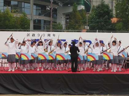 今日の吹奏楽部の演奏は2曲だけでしたが、パフォーマンスや踊りもあり、楽しい演奏を披露して、聴衆を魅了してくれました。この演奏の様子を港区民まつりの取材に訪れていたTV局が撮影していたので、もしかしたら今日のニュースの中で取り上げられるかもしれませんね?!楽しみです。吹奏楽部の皆さんありがとうございました。お疲れ様でした。