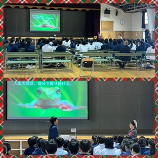 2年生では、9日(木)に、NPO法人チャイルズの方を講師としてお招きし、「多様性のある社会を考える」という題名で、講演を聞きました。