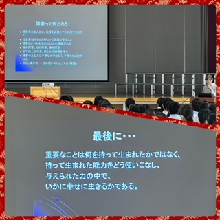 支援や配慮が必要な人たちがいるということを知り、様々な障がいのことを認め、広い視野をもって人と接することができるようになるための時間となりました。