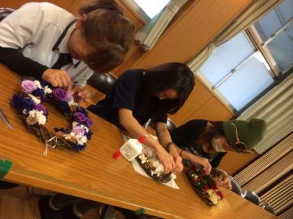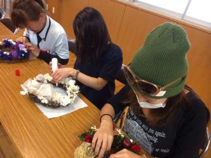 今日は13:30から多目的室で成人教育委員会主催の「Xmasリース」の講習会を開催しました。