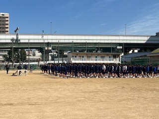 駅伝形式で、タスキをリレーし、各チームのタイムを合計したものを、参加人数で割ったタイムで競います。