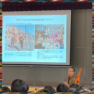 本日の講話ではユニセフの「子どもを大切にする視点」から、世界の不均衡について改めて学びました。世界には綺麗な水が飲めない人がこんなにもいるのか、5歳まで生きることができない子どもがこんなにもいるのか、と驚いている様子でした。