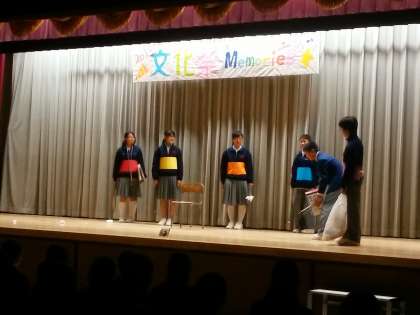 写真は生徒会の劇の様子と有志発表時の1年生が行ったコントの様子です。