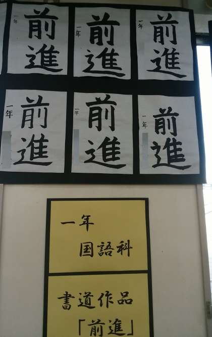 1年生は、国語の書写の時間に書き上げた毛筆作品と、美術科の授業で画いた手のデッサンが飾られていました。