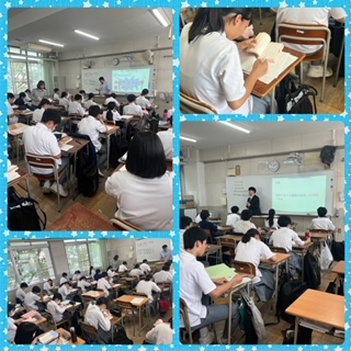 今日は、学力向上支援チーム事業の一環として、大阪市総合教育センターよりスクールアドバイザーに来ていただき、授業の方法などについて、教員がアドバイスをいただく取組が行われており、2年生の英語と数学の授業を参観してもらいました。