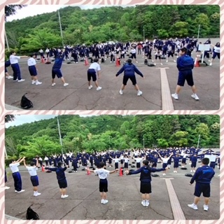 7時40分、朝のつどいでは、ラジオ体操第2を行いました。