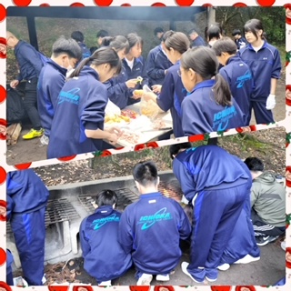 かまど係も具材係も協力して、カレー作りに励んでいます。