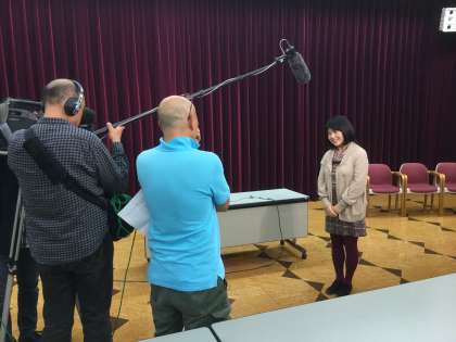 この放送コンテストでは、去年最優秀賞の3年生松浦さんが司会を務め、スムーズな進行でコンテストが進みました。また、この大会の模様や受賞者のインタビューは、来週の早朝に読売テレビの番組で紹介されるようです。ちなみに、放送はされませんが顧問の諸岡先生もテレビクルーからインタビューを受けていました。