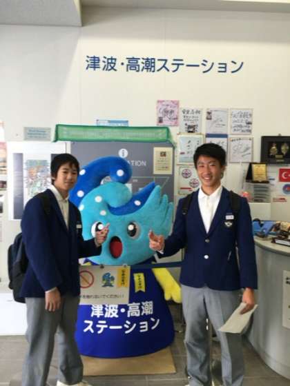 こちらは科学館から津波高潮ステーションまで徒歩で移動してきたばかりの班です。予定時間の15分前に到着し、余裕の笑顔!