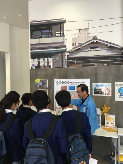 館内を施設の方に案内して頂き、大阪の地形と津波の影響を学びました。