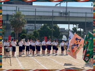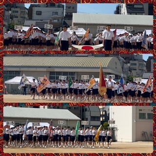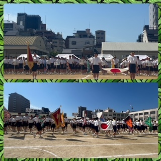 開会式、選手入場です。 子どもたちの表情は、天気と同様、晴れ晴れしています。