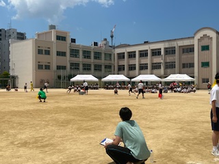 プログラム9番 ハンドボール投げ男子です。 力強い投球が続いています。