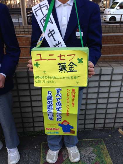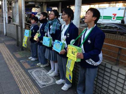 「すべての子どもに5歳の誕生日を」というスローガンを掲げ、寒空の下頑張っております。生徒会役員は「募金してもらえると嬉しい」と、白い息を吐きながらも良い笑顔を見せてくれました。募金のご協力をどうぞお願いいたします。