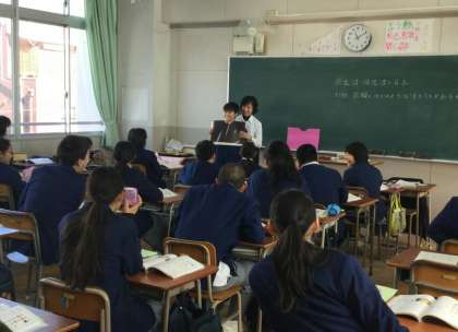 さっそく1年1組で授業が行われ、衣服の事について学びました。