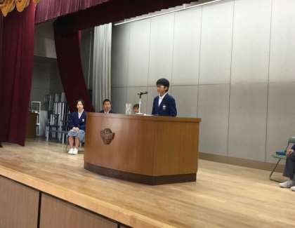 ビブリオバトルとは、それぞれおすすめの本を一冊持ち寄ってプレゼンし、「どの本が一番読みたくなったか」を決める知的書評合戦のことです。クラスごとで行われた予選を勝ち抜いた代表者8名が本日の大会に臨みました。どの代表者も与えられた時間を使い切り、堂々と発表できました。生徒が持ち寄る本は小説が多いですが、中には科学や自己啓発といったジャンルもあり、普段自分では手に取らない本との出会いを生徒は面白そうに聞いていました。