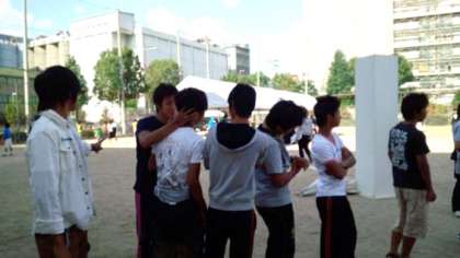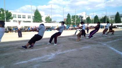その区民まつりのイベント「みなりんピック」内で行われた“五中対抗男子綱引き”に、市岡中学校からはラグビー部の精鋭8名(黒田君、窪田君、野村君、平井君、佐伯君、白井君、西原君、河野君)が出場しました。