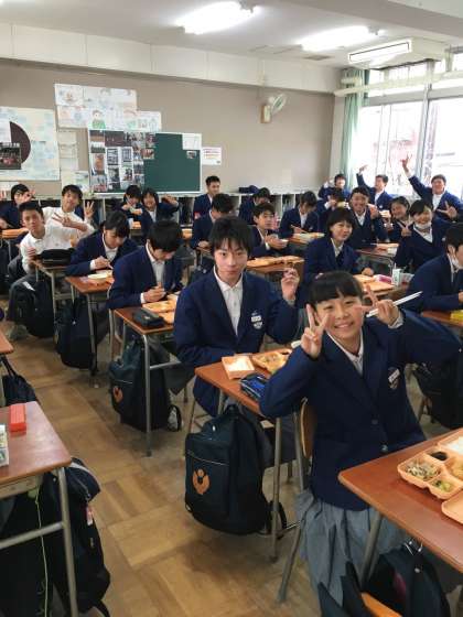 今年最後の給食 12/16 公開日 2015/12/16 更新日 2015/12/16 お知らせ 今日は、今年最後の給食でした。 2年生は、撮影に大盛り上がり!1年生はお行儀良く食べています。 味はどうでしたか?来年も楽しい給食時間にしましょうね。 いいね(0)
