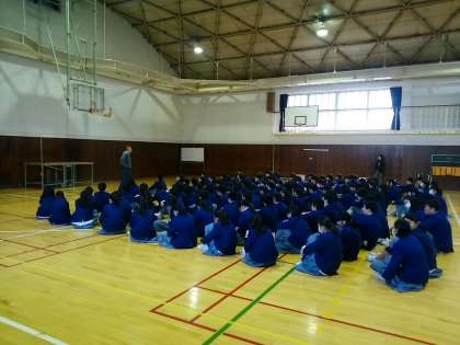 今日は、明後日からの冬休みに備えて各学年、冬休み中の過ごし方等についての学年集会を実施しました。明日12/25(金)は、今年及び今学期の締めくくりとなる終業式があります。