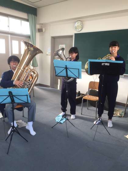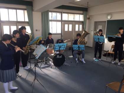 明日12/28(月)、大東市総合文化センターにてアンサンブルコンテストが行われます。吹奏楽部の代表7名が参加します。日頃の練習の成果を発揮して、一生懸命頑張ります!