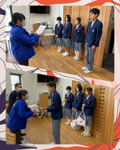その募金活動で集まった、総額26505円を、生徒会役員が社会福祉協議会に持っていきました。