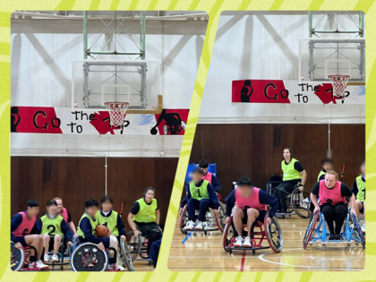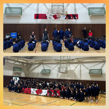 その後、選手との交流も含め、車いすバスケットボールを体験し、ミニゲームを行いました。