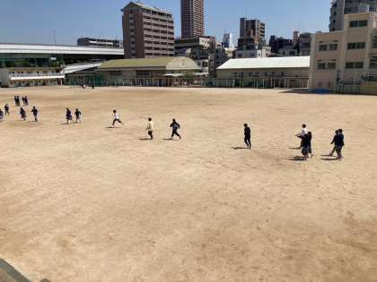 昼休み、グラウンドでは2年生が大きな声で「せんせー!鬼ごっこしよーー!」まるで小学校のような楽しそうな声が響き渡っていました。元気な中学生に追いかけられて先生たちの方が息が上がってました。