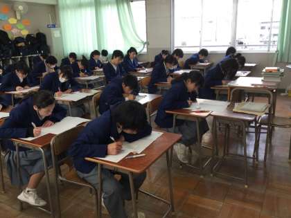 今日は5時間目に英語能力判定テストが1年生で実施されました。英語能力判定テストの点数で自らの英語能力を把握し、英検受験の目安になります。また自分の弱み・強みも把握することができます。