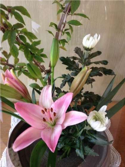 本日飾っていただいたのは「菊」です(下の写真)。このつぼみがいつ、咲くのか、大変楽しみです。