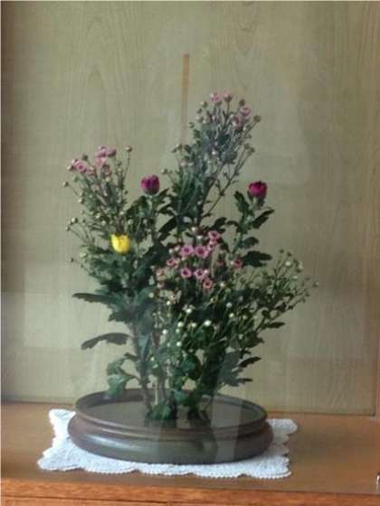 今週も仁平八千代さんに「生け花」を飾っていただきました。上の写真は1週間経った、「錦木」です。きれいに見事な花が咲きました。