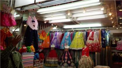 (写真右:鶴橋商店街の中にある韓国民族衣装〈チョゴリ〉販売のお店です)