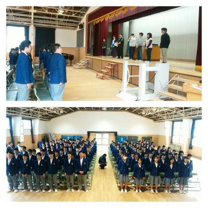 今日も熱のこもった練習が行われました。昨日出来なかった所作も上手くなり、着々と準備も整ってきました。特に合唱の練習では、名取先生からの熱血指導に応えるかのように素晴らしい歌声で、舞台上から聴いていた3年生の先生方を魅力していました。でもその歌声に「まだまだやれる!」と、生徒達のポテンシャルを信じた上での【檄(げき)】が飛んでいました。