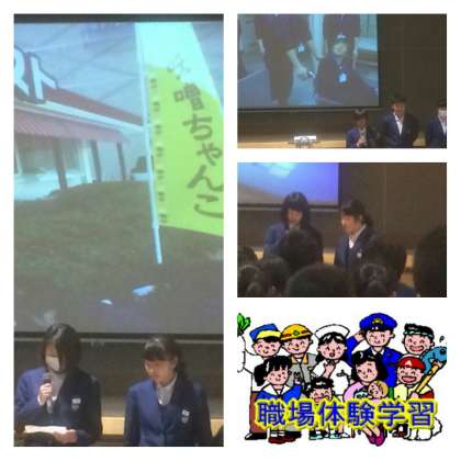 体験させて頂いた職場毎に報告を行いました。どの職場でも内容の濃い貴重な体験をさせて頂き、あらためて仕事の大変さや重要さを感じたようです。この体験をこれからの生活や進路に繋げて欲しいと思います。