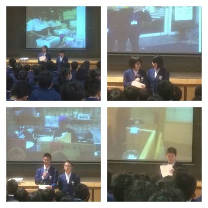 2年生は、6時間目に講堂で職場体験報告会が行われました。