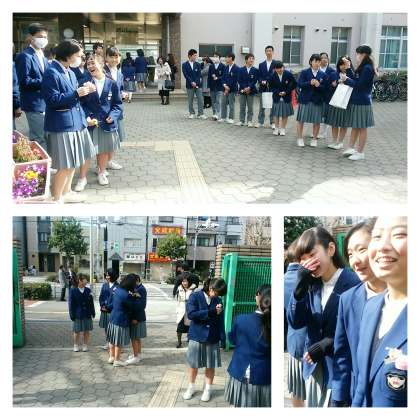 卒業式前、登校してきた卒業生に在校生がコサージュを胸に付けてくれていました。