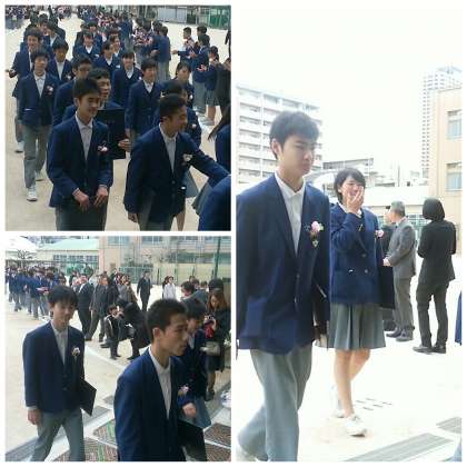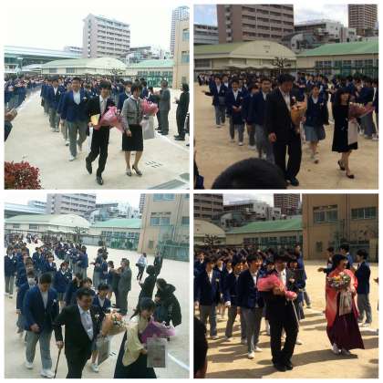 花道では、すがすがし笑顔で歩く生徒と涙ぐみながら歩く生徒達に沢山の保護者や在校生から拍手が贈られました。
