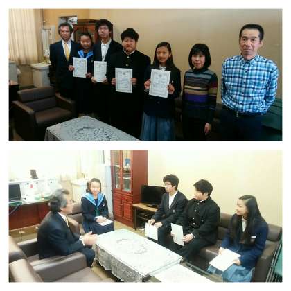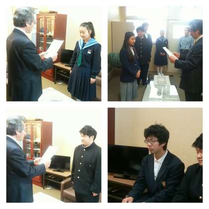 今日は、本校の日本語教室に通っていた4人の生徒に対する修了式が校長室で行われました。