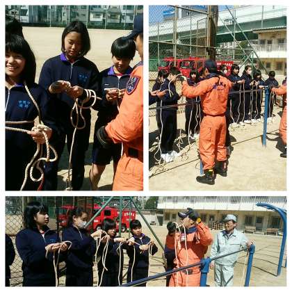 防災リーダー講習会2 3/19 公開日 2016/03/19 更新日 2016/03/19 お知らせ またグランドでは、3グループに分かれて、ロープの結び方や、消化器の使い方、毛布と物干し竿で担架を作ったりと、実際の緊急時に使える知識を得ることができました。 この経験を活かして防災についてよく考え、一人一人が、防災リーダーとしての自覚と意識を持って災害時には動いて欲しいと思います。 いいね(0)