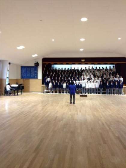 今日は、6限目に3年生の合唱練習の様子を見にいきました。あの狭い舞台に3年生全員(約160人)がならぶ姿は、それだけですごい迫力でした。また、クラス単位の合唱とは異なって、歌声も声の大きさだけでなくて、なんともいえない迫力が伝わってきました。